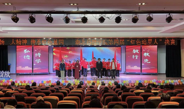 (通讯员:李雅然;审核:刘波)11月26日晚上19:00,第四届“红色追星人”决赛在学校图书馆学术报告厅隆重开始。本次活动以“弘扬三大精神,传承红色基因”为主题,由校团委与经济与管理学院党委联合主办,近500名师生齐聚现场,共同畅享这场红色文化盛宴。在决赛激烈角逐的中场间隙,青马班学员带来的红色中场节目,以恰到好处的调剂节奏,为现场注入别样青春力量。