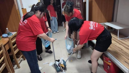 活动中,学生党总支入党积极分子、发展对象及青马班成员在学生二支部书记王蓓老师的带领下,聚焦毕业生离校的实际需求开展实践服务。在毕业生寝室整理工作中,志愿者们秉持“精益求精” 的匠心,不放过任何卫生死角,对闲置物品进行分类规整,以细致入微的态度完成每一项任务;行李打包搬运环节,大家发扬 “协作共进” 的精神,耐心沟通毕业生需求,稳妥搬运各类物品,用严谨作风和务实行动诠释工匠精神的核心内涵,将德育要求融入具体实践之中。