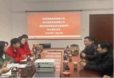(通讯员:陈雨纷;审稿:王娜)为进一步落实产教融合、校企合作育人理念,拓宽经济管理类人才实践培养渠道,武汉顶益食品有限公司、武汉顶津食品有限公司与湖北科技学院经济与管理学院于11月20日签订校企合作协议。