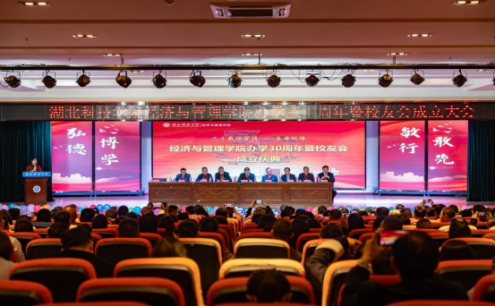 11月15日下午,经济与管理学院办学30周年暨校友会成立大会在学校图书馆学术报告厅隆重召开。参会代表及校友有序签到并领取纪念品,共同见证这一重要时刻。校长李岱、副校长白育庭、湖北科技学院校友会秘书长陈洪国、经管学院前院长商文斌教授、胡俊超教授,前党委书记佘斯勇教授、退休教师代表及经管学院现任班子成员出席大会,与经管学院师生代表及300余名海内外经管校友同见证学院校友工作开启新征程。