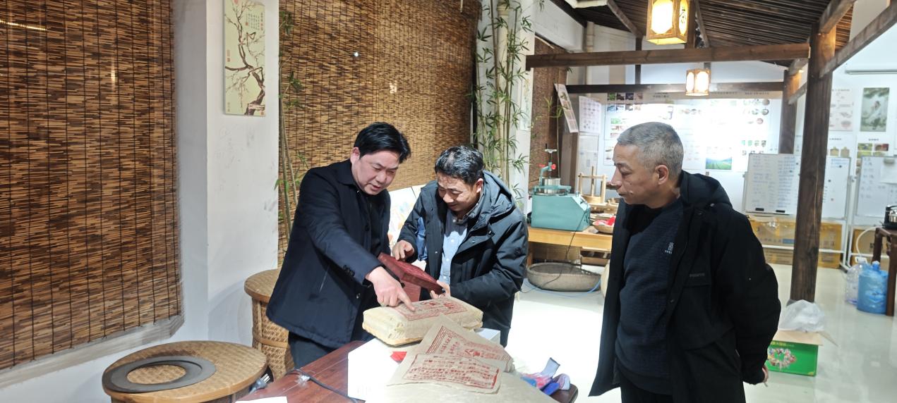 21日下午会谈前,程仲鸣教授与校友们共同前往咸安老校区,开启了“故地重游”的怀旧之旅。随后饶有兴致地参观了我院湖北省非物质文化遗产研究中心——青砖茶制作基地,并就非遗文化传承与经管专业发展的融合路径展开了深入探讨。